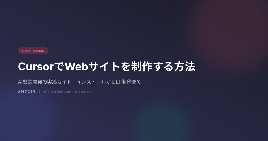 アントワでは、LP制作からSaaS開発まで、すべてのプロジェクトにCursorを使ったAI駆動開発を取り入れています。このサイト(antoir.jp)自体も、Cursorで制作しています。